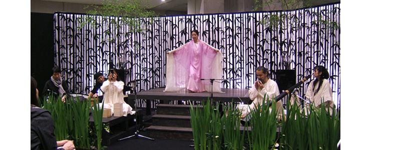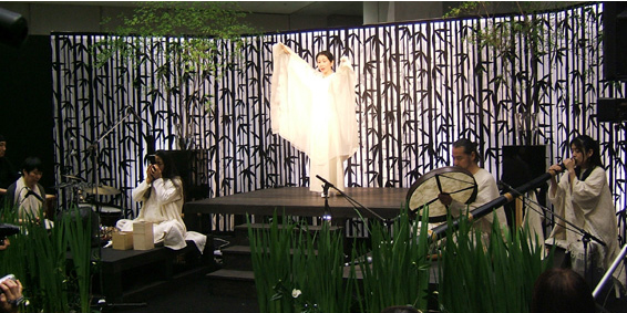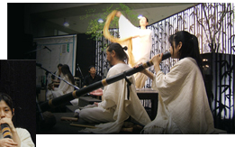 左から 永田砂知子 (波紋音) 永井朋生 (パーカッション) 田島和枝 (笙) 秦理絵 (オイリュトミー)